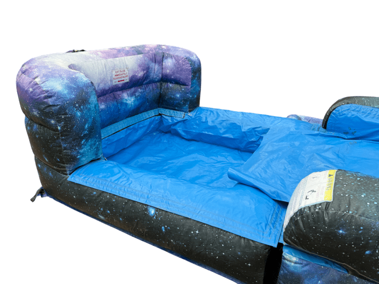 Take your party to another galaxy with our Moonwalker Combo – Space Themed Bounce & Slide Inflatable! This eye-catching space bounce house with slide features a vibrant outer space design and an awesome astronaut mascot riding a rocket through the stars, making it the perfect centerpiece for any space-themed birthday party, school event, church festival, or backyard celebration.