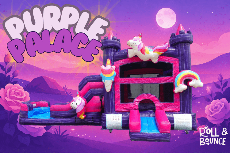 The Purple Palace Combo Inflatables Bounce House + Waterslides brings the best of both worlds together: a gigantic bouncing area for high-energy fun and a thrilling waterslide that adds a splash of excitement to any event. But that's not all -the theme possibilities are endless! With easy-to-swap themes, you can customize the look of your bounce house to fit the perfect fantasy world for your party guests. Whether your little one dreams of exploring the ocean depths as a mermaid, soaring the skies as a majestic unicorn, or living the royal life as a princess, the Purple Palace Combo makes it all possible.