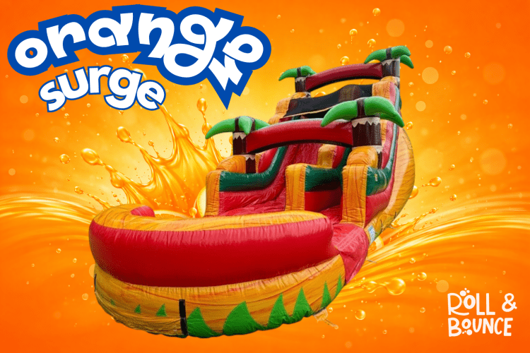 Make your next party unforgettable with the brand new 16 FT Orange Surge Waterslide from Roll & Bounce, now available for rental in Brunswick, GA and surrounding counties. This vibrant inflatable waterslide features bold orange and green colors, a steep 16-foot drop, and a refreshing splash landing that will keep kids, teens, and even adventurous adults coming back for more. The Orange Surge is perfect for backyard birthdays, summer barbecues, school field days, church festivals, and any outdoor celebration where fun is a must. Safe, clean, and professionally maintained, this waterslide brings both excitement and peace of mind. Whether you're planning a small family gathering or a large community event, the Orange Surge adds the perfect splash of fun to any occasion. Book now with Roll & Bounce and let the water-filled adventure begin—this popular slide won’t stay available for long!