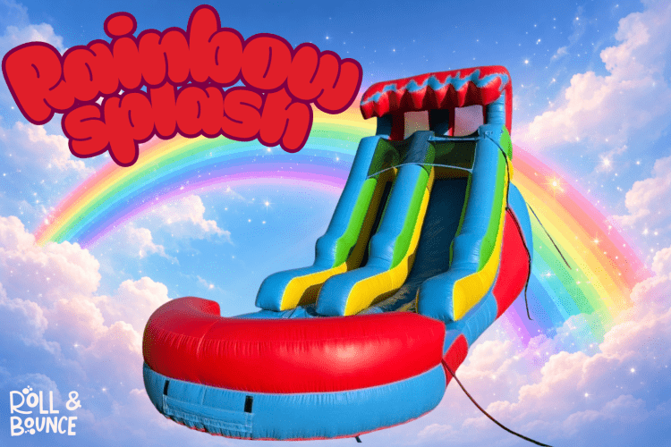 The 15 ft Rainbow Splash Waterslide is a vibrant and exciting inflatable slide perfect for summer parties and outdoor events. Featuring a stunning splash of color, this rainbow waterslide offers hours of adventure. With its 15-foot height, it provides an exhilarating ride that ends in a refreshing splash. Ideal for backyard gatherings, birthday Parties, and family celebrations, the Rainbow Splash Waterslide bring the ultimate cool-down experience during hot summer days. Rent it now for a fun-filled, UNFORGETTABLE time!